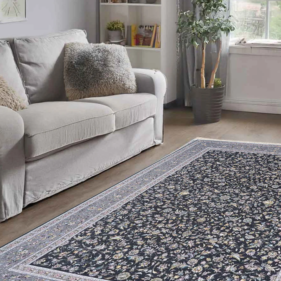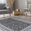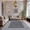 Add rich texture to your space with the Amatis Adrianna Dark Grey Rug. A deep charcoal base is covered with an all-over field of scrolling vines and petite florals, finished with layered borders in soft grey and ivory with subtle pastel highlights. The refined palette grounds a room while the intricate pattern adds movement and depth.