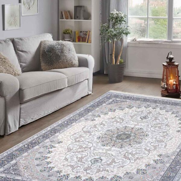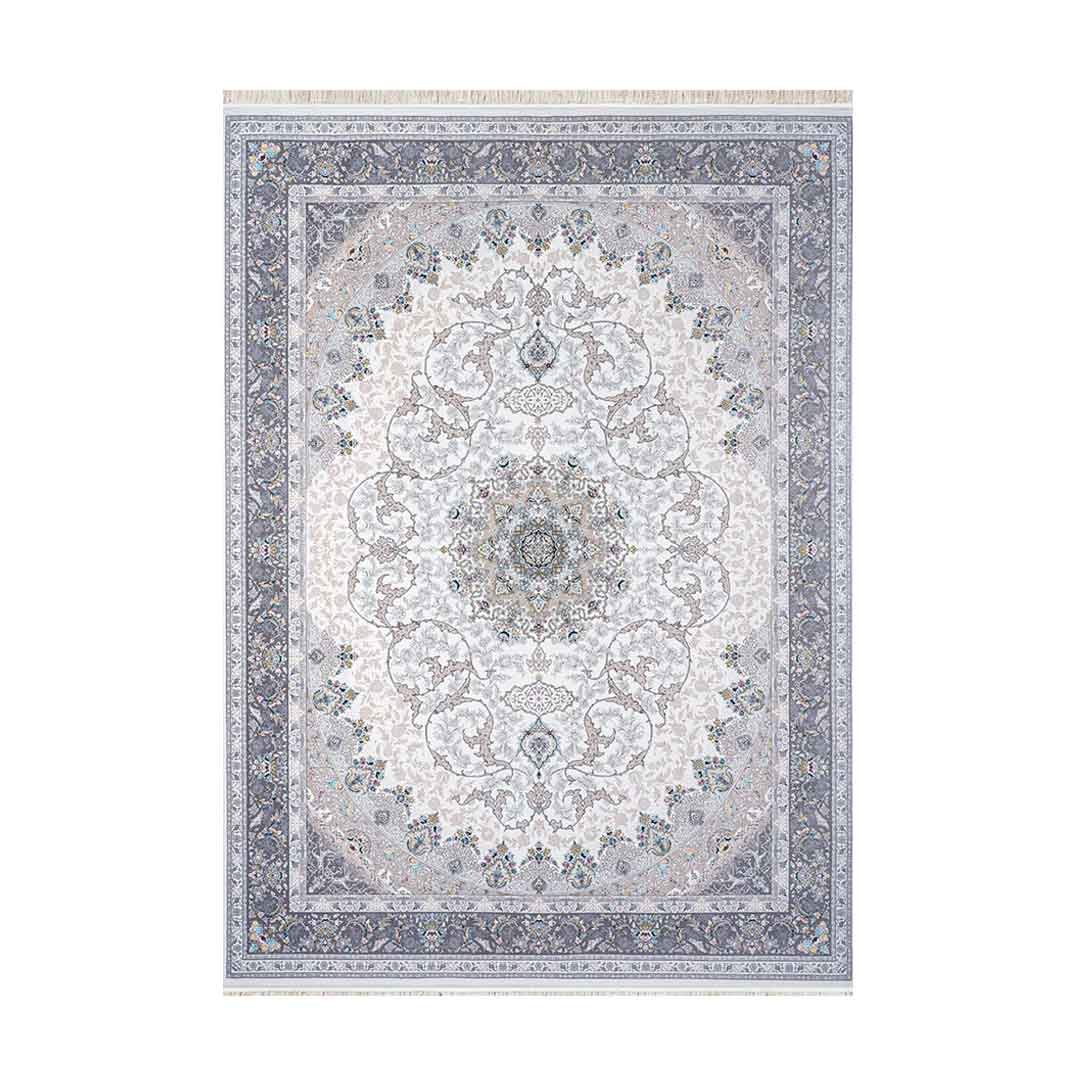 Brighten your space with the Amatis Sara White Rug. A clean white field centres a finely detailed floral medallion, framed by an oval garland of vines and layered borders in soft grey and ivory with gentle blue accents. The light palette opens up any room and the classic pattern adds calm structure that is easy to style.