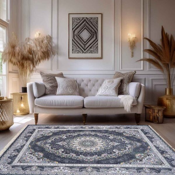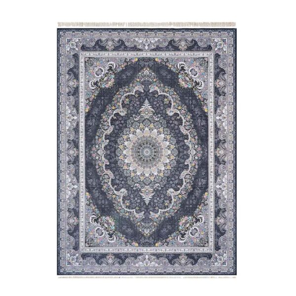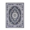 Add refined depth to your room with the Amatist Viona Dark Grey Rug. A charcoal field centres a layered rosette medallion, set within an oval garland of scrolling vines and framed by ornamental borders in grey and ivory. Small touches of pastel blue, rose and gold lift the palette, giving the design richness without overpowering your décor.