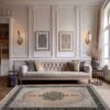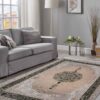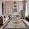 Create a warm, relaxed setting with the Emerald Abalon Beige Rug. A soft beige centre features a finely detailed round medallion in teal green, framed by layered borders and delicate floral scrolls. Subtle vintage shading adds character while keeping the look refined and easy to style with neutrals.