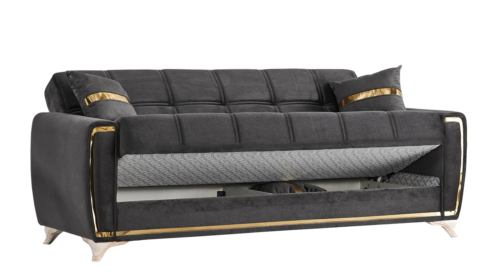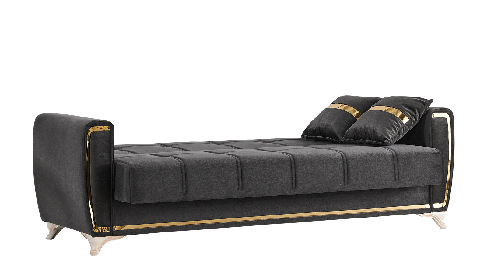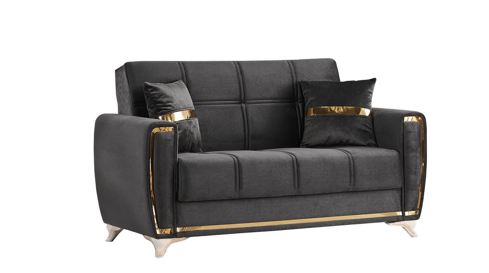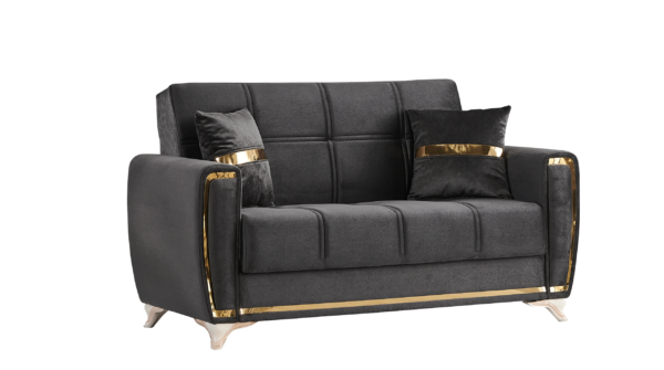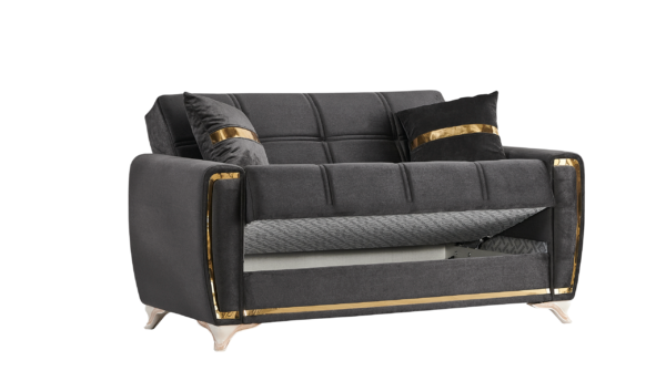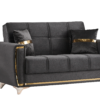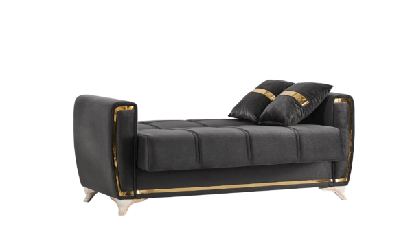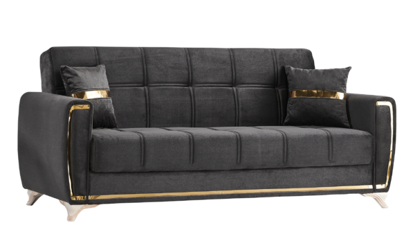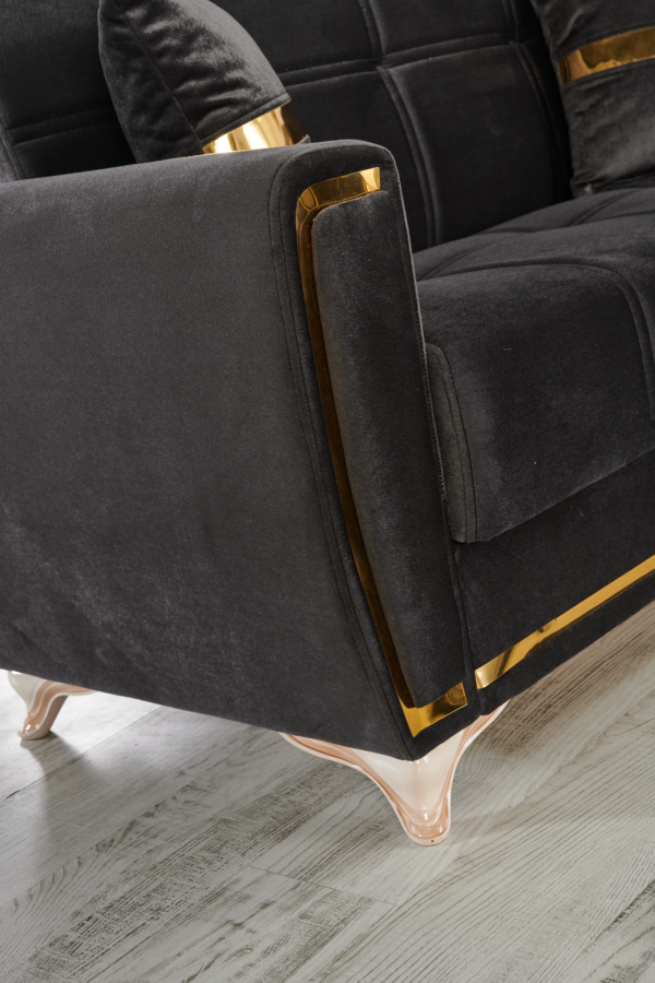 The Kayseri collection will be an eclectic focal attraction for your living room. The successful combination of woven velvet sides and comfort, heightens the overall modern appearance. Each sofa has a effortless operating mechanism to turn a sofa into a bed in the matter of seconds. A high quality frame is twisting and bending resistant providing large spaces under each sitting area for all of your living room storage needs. All sofas are intricately detailed with splashes of gold across the pillows, around the frame and most noticeably on the legs to create a luxurious finish to a most functional piece.